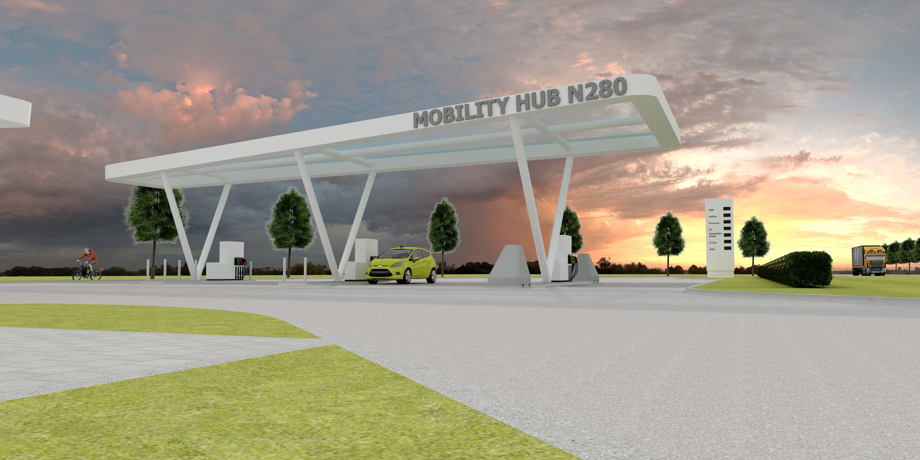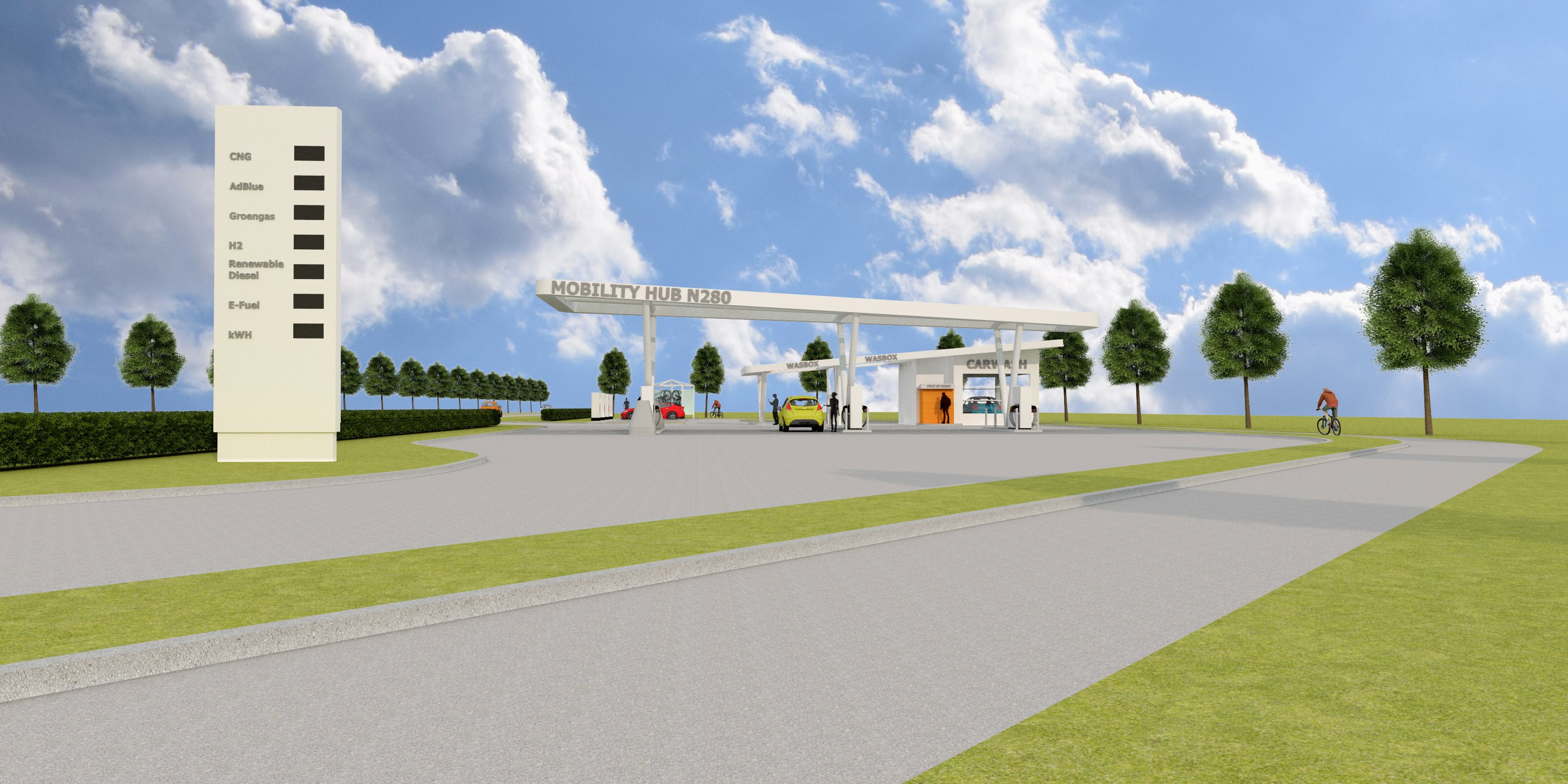 De Mobliteitshub N280, een plek waar lokaal en regionale weggebruikers van de N280 gebruik kunnen gaan maken van de nieuwe energiebronnen, zoals elektriciteit, waterstof, enz. Tevens zal bij de realisatie en in de toekomst nog een aantal diensten toegevoegd kunnen worden, die ten tijden de behoeven van het mobiel verkeer kunnen versterken. Omdat het fietspad voorbij de Mobliteitshub N280 loopt, zullen fietsers hier ook een voorziening krijgen voor fietsverhuur en onderhoud in de vorm van bandspanning meten, stalling, enz.